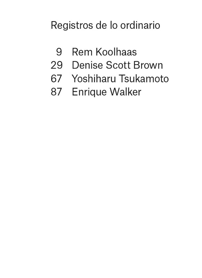 Este libro recoge cuatro conversaiones con Rem Koolhaas, Denise Scott Brown y Yoshiharu Tsukamoto. Desde principios de este siglo, la disciplina de la arquitectura ha centrado vehementemente su atención en documentar la condición urbana contemporánea. Cada ciudad ha sido examinada como un repositorio de conceptos arquitectónicos, interrogada como un manifiesto urbano, registrada como una serie de objetos encontrados. Registros de lo ordinario articula una genealogía potencial para esta práctica y para el género de libros que de ella se deriva, y forma parte también del proyecto que Enrique Walker recogió en el libro Lo ordinario (Editorial Gustavo Gili, Barcelona, 2010). Organizado en torno a conversaciones con los autores de tres textos fundamentales que documentan la ciudad ?Rem Koolhaas con Delirio de Nueva York, Denise Scott Brown con Aprendiendo de Las Vegas y Yoshiharu Tsukamoto con Made in Tokyo?, este volumen rastrea la historia de estos ?libros sobre ciudades? al examinar el material que registraron, los hallazgos que establecieron, los argumentos que formularon y los proyectos que promovieron. Estas conversaciones también cuestionan los supuestos subyacentes a esta práctica, y si en su ubicuidad esta aún supone un espacio de oportunidad.