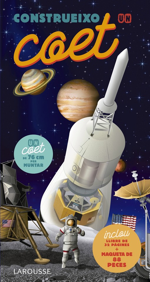 Ja fa 50 anys de l'arribada a la Lluna i, amb aquesta exclusiva guía interactiva de coets, els més petits podrán rememorar aquell viatge, construir una maqueta del poderós Saturn V, i conèixer dades fascinants sobre l'exploració de léspai. Quina velocitat ha d'agafar un coet per escapar de la gravetar de la Terra? Quin coet feia 18 metres més que l'Estàtua de la Llibertat de Nova York? Com serán els coets del futur? Conté un coet de 76 cm. per muntar. Sense tisores ni pega, només cal acoblar les peces!