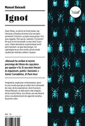 Quan Mateu, un pintor en hores baixes, rep l’encàrrec d’il·lustrar els textos d’un escriptor anomenat Crisòstom, accepta sense pensar-s’ho dues vegades. Però qui és, realment, Crisòstom? Per què no ha transcendit, la seva obra? A poc a poc, Mateu descobrirà un personatge humil però fascinant, un geni desconegut, i se submergirà en un món insòlit, ple de miralls i poblat per individus solitaris i esquius. Imaginativa, enginyosa i enlluernadora, Ignot és una novel·la que gira al voltant de la necessitat de crear, de les expectatives i de la frustració. Manuel Baixauli, un dels autors més singulars de les nostres lletres, ens ofereix una veu literària única i una demostració de capacitat narrativa de primer ordre.