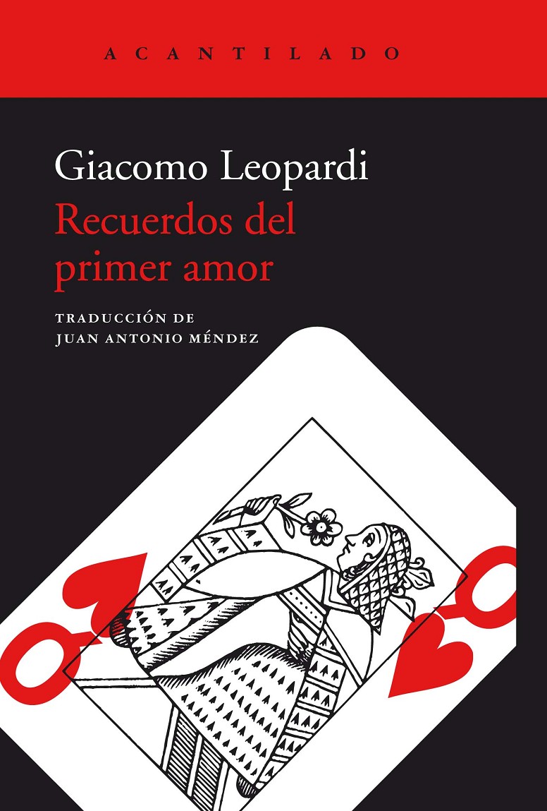 «Heme aquí, pues, enamorado a los diecinueve años [02026;] Pero como necesito dar algún consuelo a mi corazón [02026;] escribo estas líneas para explorar las profundidades del amor y poder recordar con la mayor exactitud cómo irrumpió en mi corazón esta pasión soberana». En diciembre de 1817 Leopardi conoció a Geltrude Cassi Lazzari, prima de su padre, por quien profesó un amor secreto. Ese mismo día empezó la redacción de los dos textos recogidos en este volumen: «Recuerdos del primer amor», publicado por primera vez en 1906, y la «Elegía primera», incluida poco después en los Cantos con el título de «El primer amor». Tanto el diario como el poema del joven Leopardi constituyen dos de los textos más emblemáticos del Romanticismo no sólo por su belleza sino también por su singularísima sensibilidad.