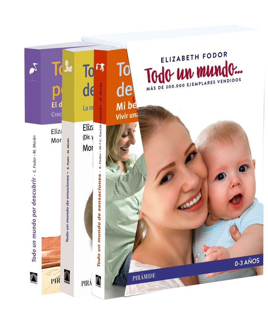 TODO UN MUNDO DE SENSACIONES: En este libro se presenta un programa diario ampliamente desarrollado y estructurado para la etapa que comprende desde el nacimiento hasta los seis meses de edad, aproximadamente. El objetivo es que, mediante el juego, puedas ayudar a tu hijo a alcanzar el máximo rendimiento de sus capacidades intelectuales y motrices y, de esta manera, consigas que sea un niño feliz. A medida que avances en su lectura sentirás la alegría y el entusiasmo de ir aprendiendo a contribuir a su desarrollo satisfactorio de una manera divertida y lúdica. TODO UN MUNDO DE EMOCIONES: Descubrir e interpretar la misteriosa vida emocional del bebé es una tarea compleja. Nos quedamos maravillados al saber que las experiencias emocionales, especialmente en los primeros años de vida, influyen de forma notable en el inconsciente. Así, ahora sabemos que los bebés son capaces de interpretar las emociones reales en los gestos y que su mundo imaginario está muy desarrollado. Este libro nos explica cómo funciona el mundo emocional del bebé en la práctica y nos orienta para saber: Cómo reconocer las emociones de nuestros hijos desde que nacen; Cómo actuar frente a ellas; Qué hacer para ayudar a los niños a conseguir un desarrollo emocional armónico. TODO UN MUNDO POR DESCUBRIR: En esta obra se presentan actividades para la etapa que comprende desde los seis a los veinticuatro meses de edad. El «programa de juego» que se ofrece es el resultado de veinte años de experiencia trabajando con niños pequeños y es la continuación del libro Todo un mundo de sensaciones, publicado también en Ediciones Pirámide. El objetivo del libro es que los niños, junto con sus padres, puedan disfrutar lúdicamente en la adquisición de la autoestima y de la capacidad de concentración y de resolver pequeños problemas, que descubran el mágico mundo del arte y la música y desarrollen el gusto por aprender y la tolerancia hacia los demás para prevenir el fracaso escolar y la violencia infantil.